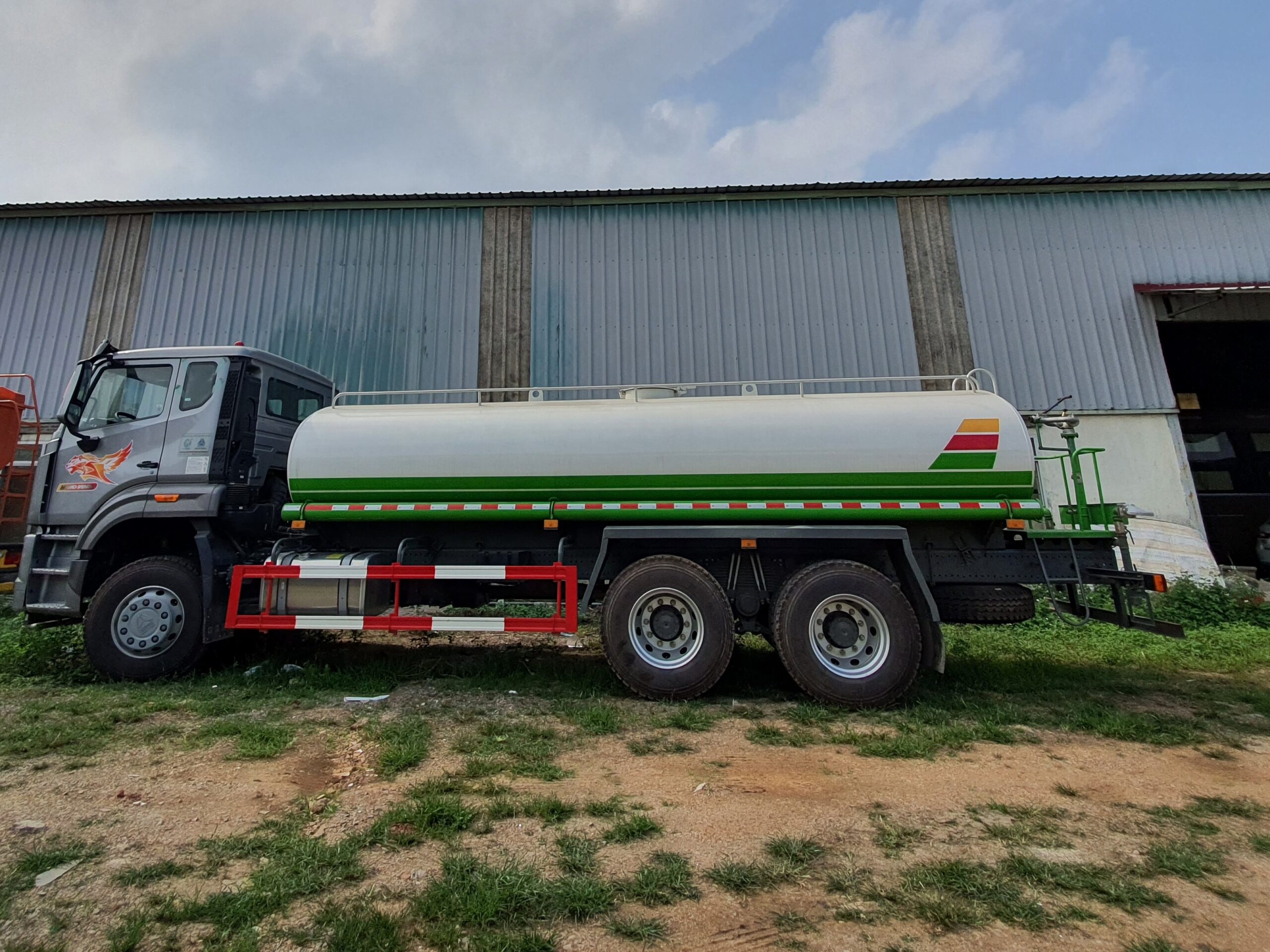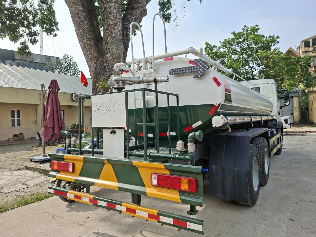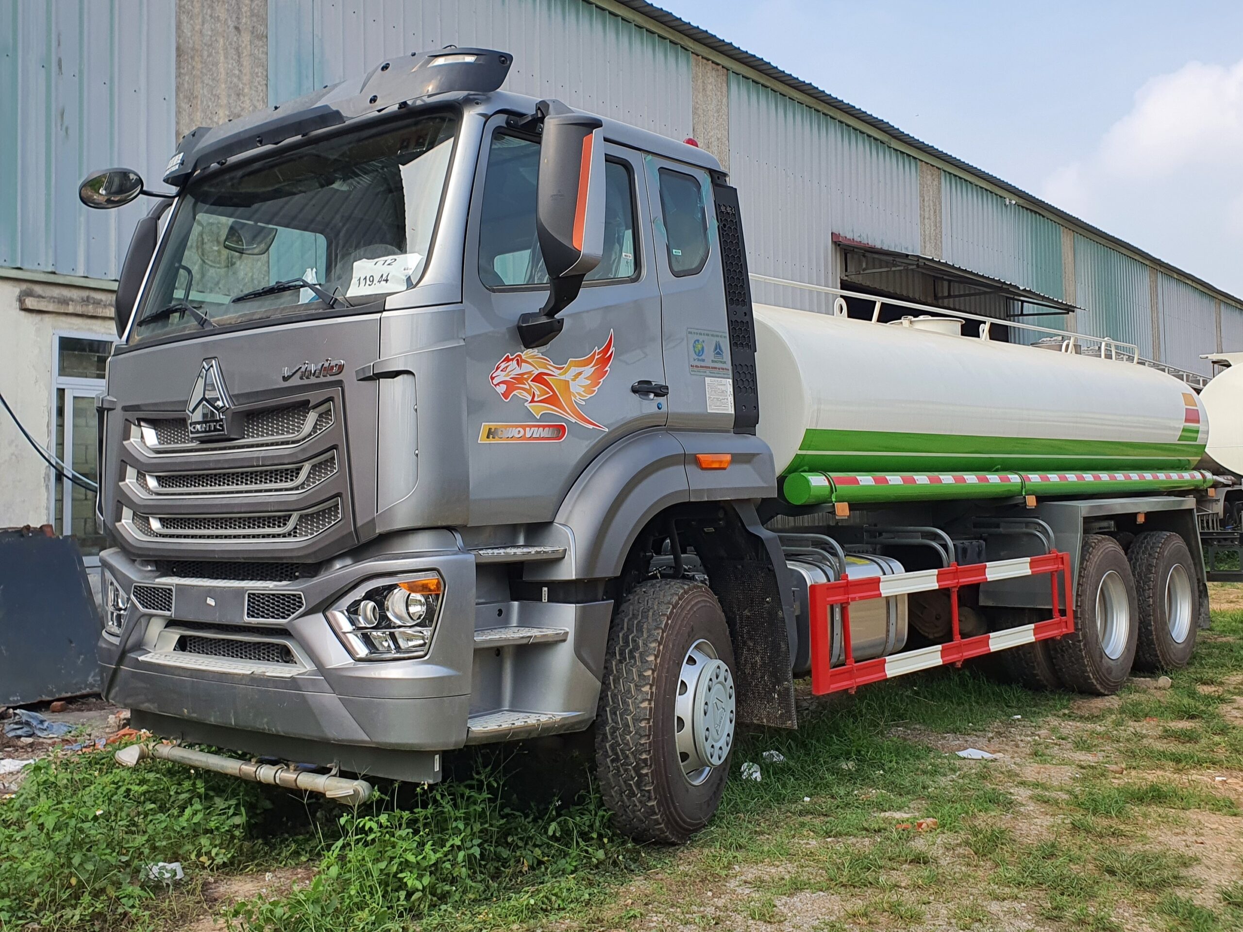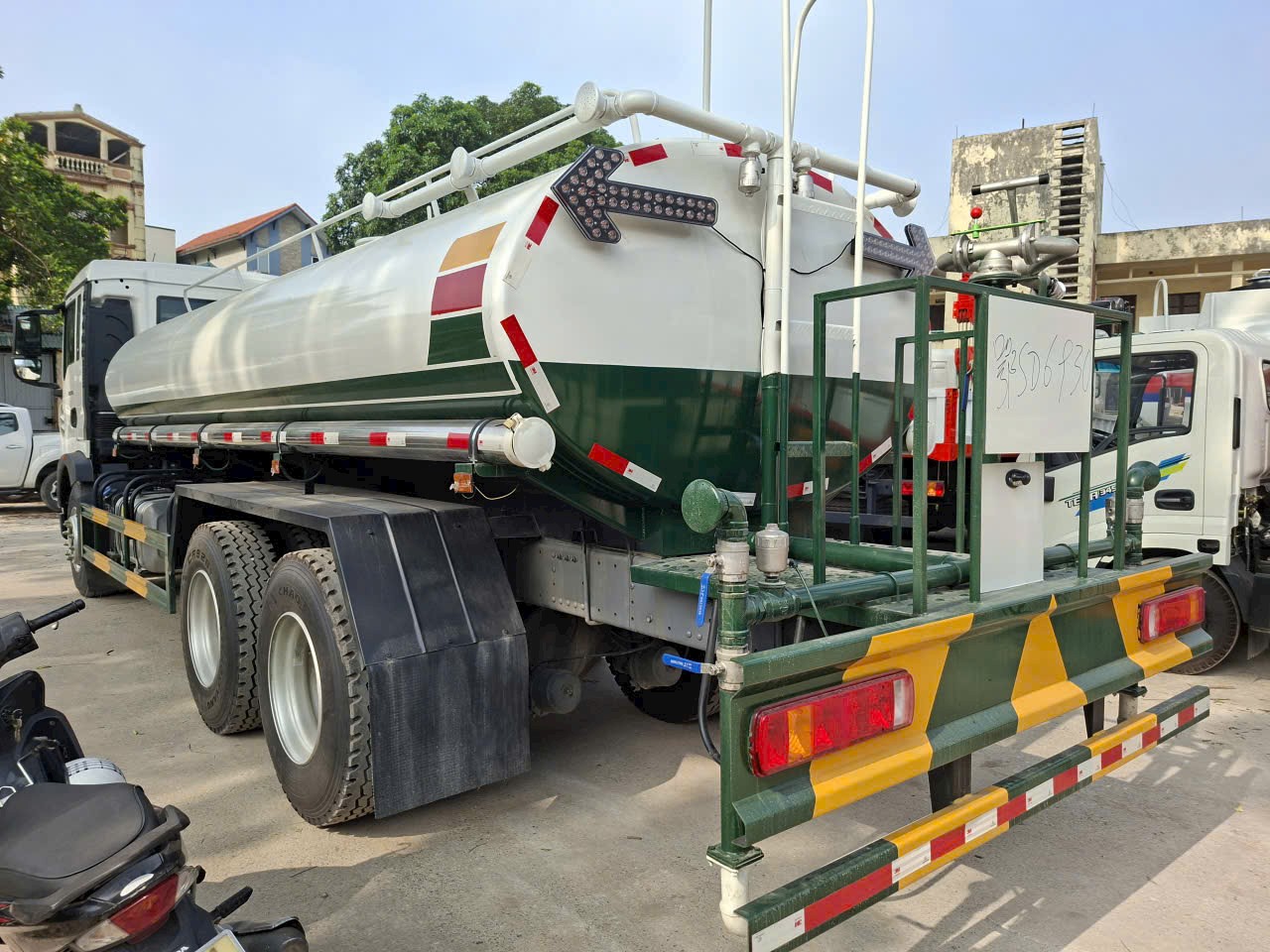 | Thể tích, quy cách | Thể tích xi téc 13m3, Vật liệu: Thép Q235, Độ dày đầu bồn/ bồn/ vách ngăn: 4/4/4 mm.Có vòi xịt phía trước, vòi xịt phía sau, bệ vận hành phía sau, vòi xịt bên hông, súng phun nước cao áp | |